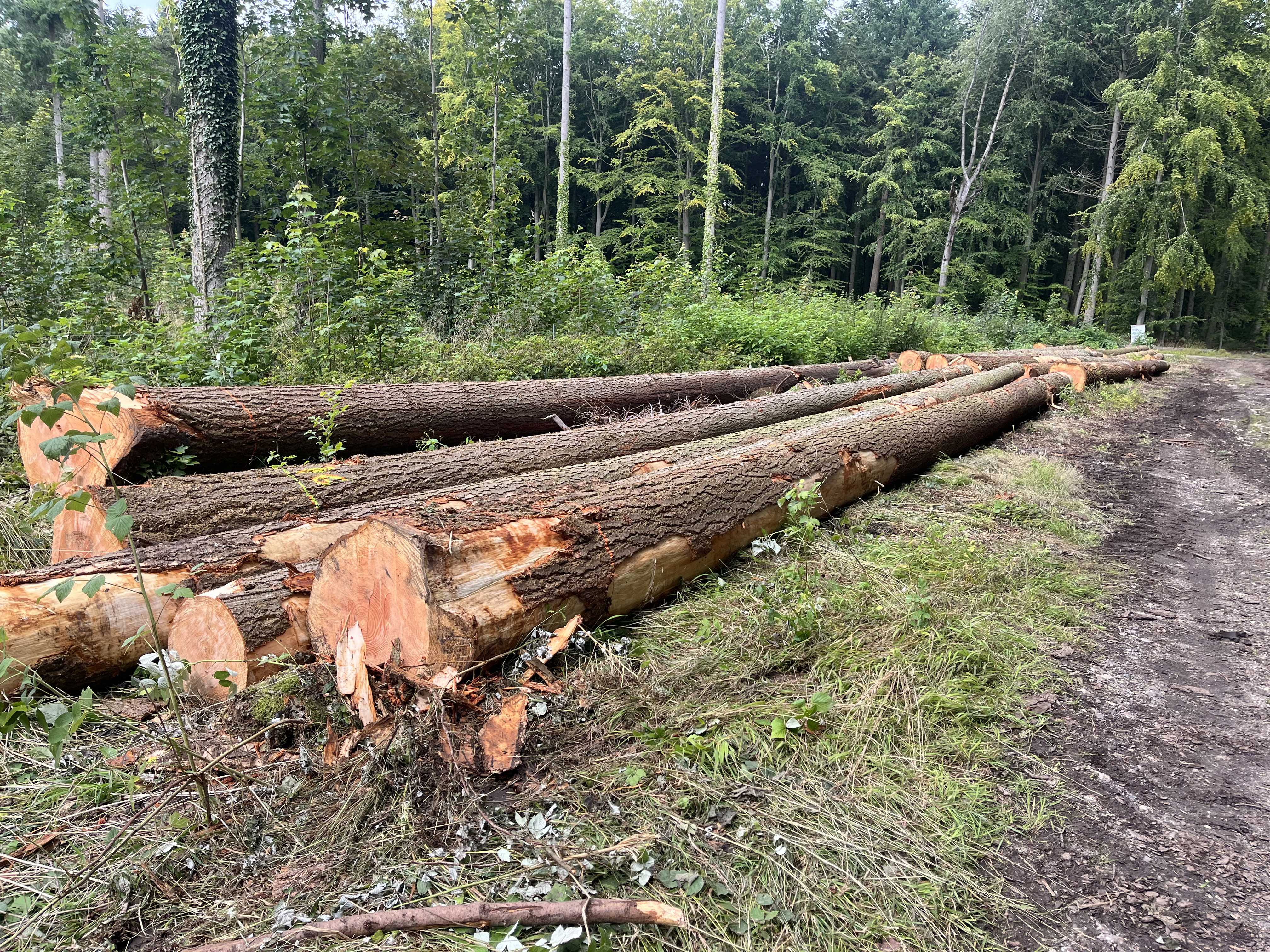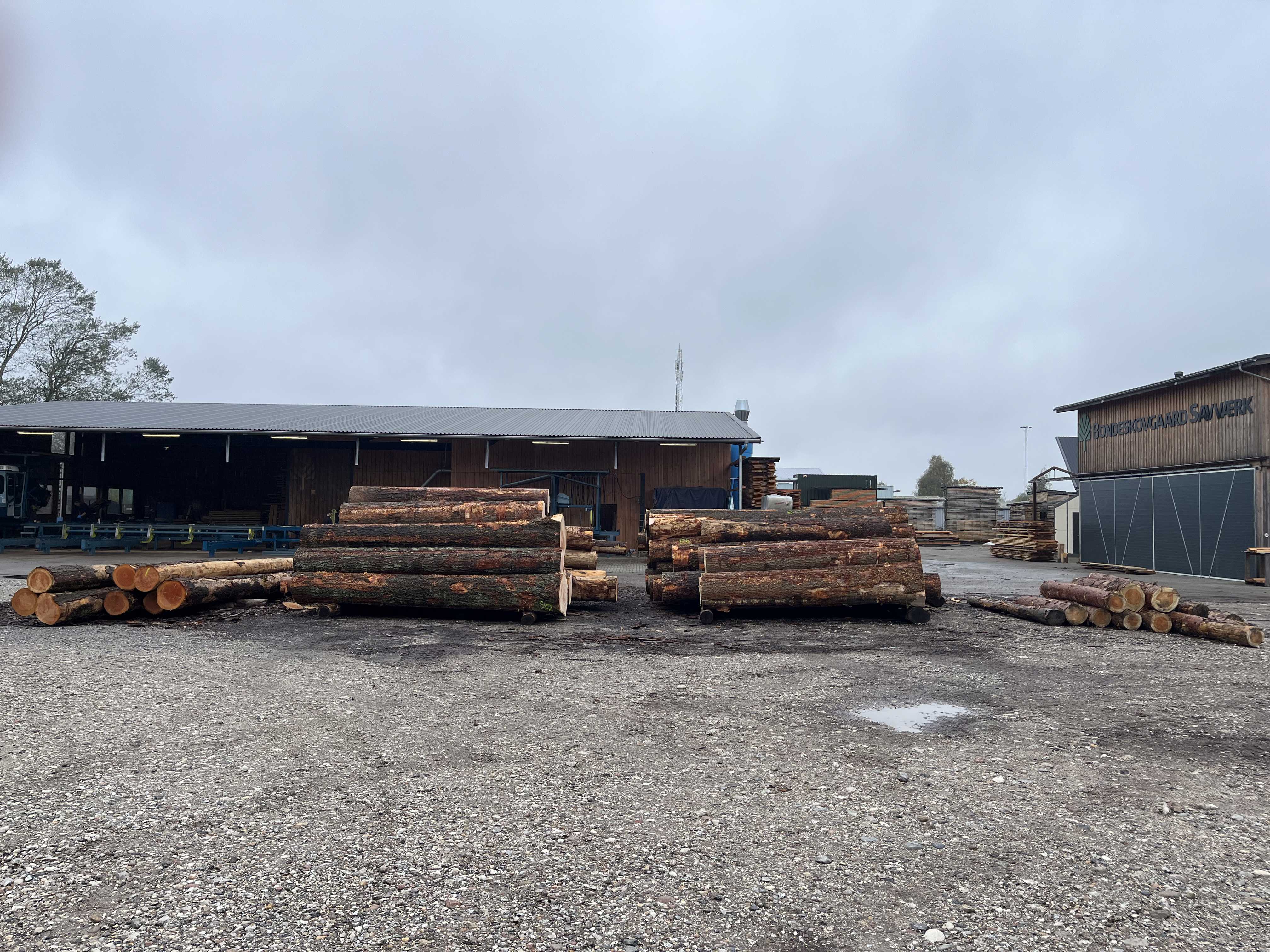 Efter fældningen er tømmeret skåret op på et lokalt savværk.