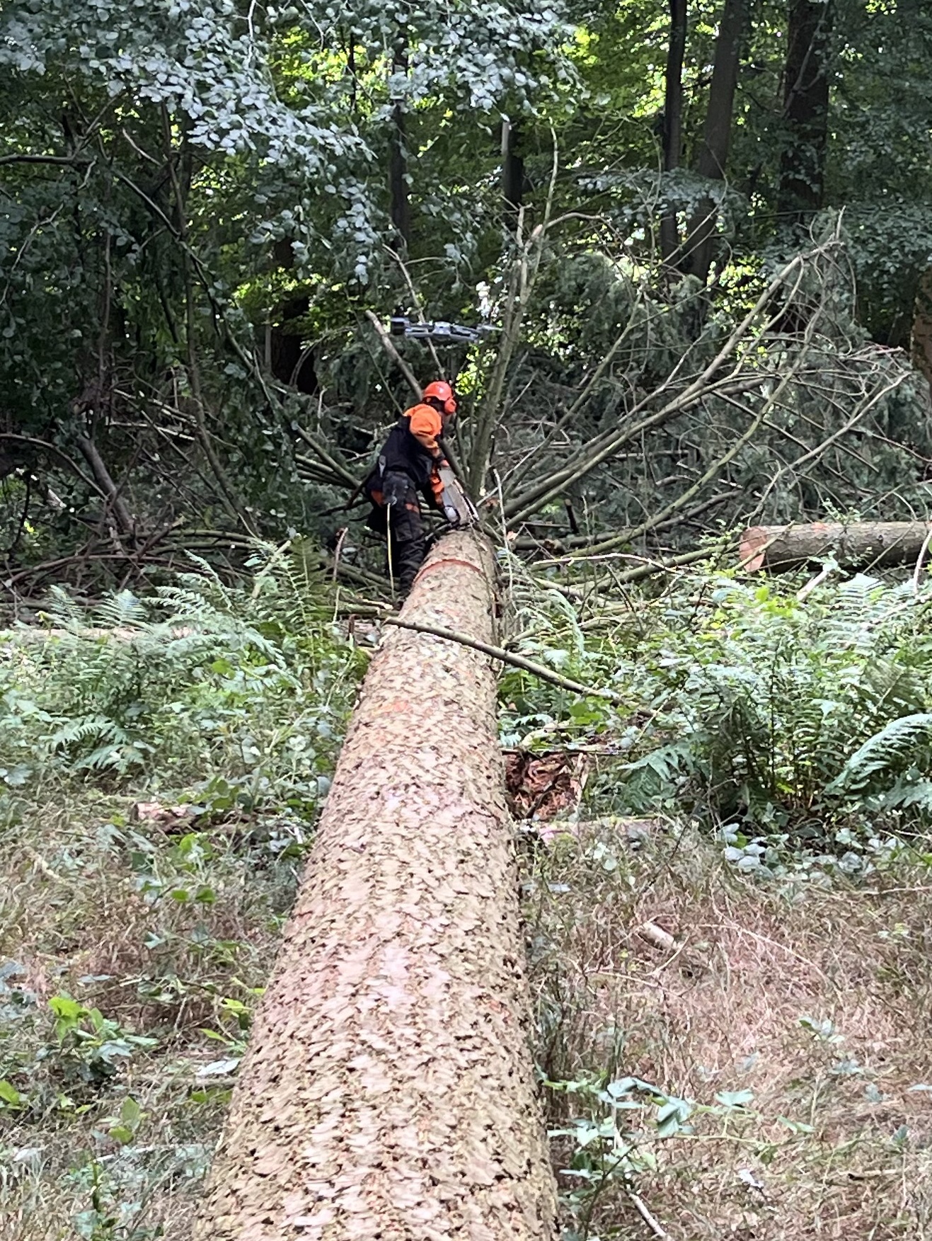 Efter fældningen er tømmeret skåret op på et lokalt savværk.