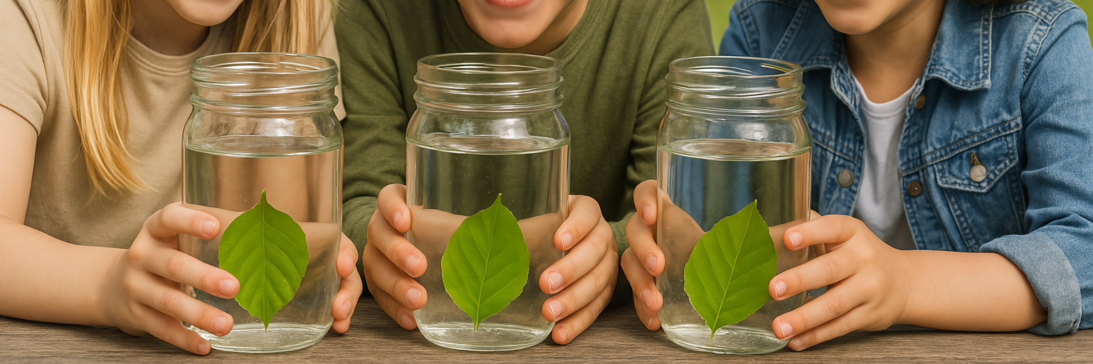 [N/T] I dette forløb bliver eleverne introduceret til fotosyntese, hvor de lærer, at når solen skinner på et blad, dannes ilt (og sukker).