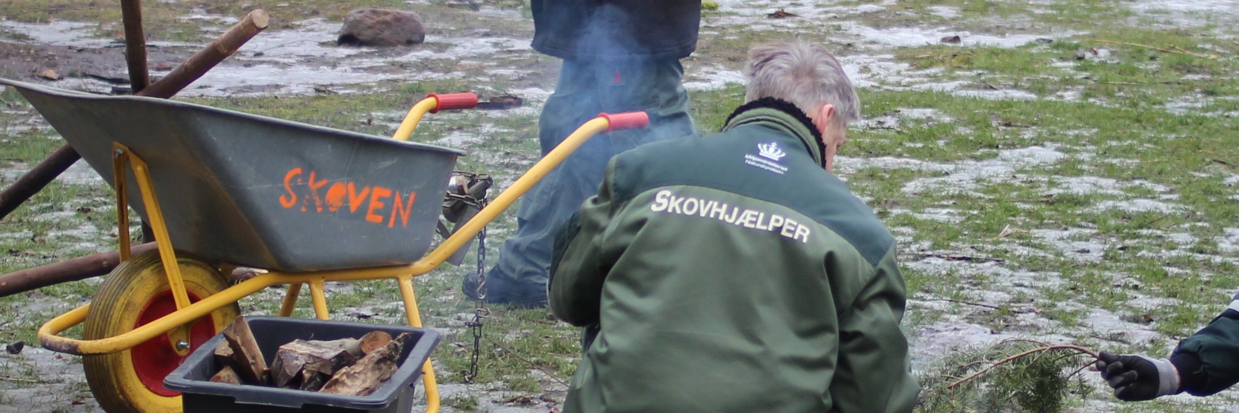 Vi hjælper med at holde skoven pæn. Vi klipper grene, slår græs, hugger brænde, ordner shelters og bålpladser og tænder bål for børnehaver og skoleklasser. Vi har også en bigård, som vi passer og viser frem til børnehaver og skoleklasser.